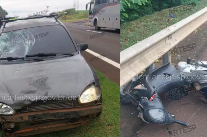 Uma mulher de 46 anos morreu após um acidente entre uma motocicleta e um carro no km...
