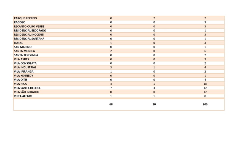 O Município até o último dia 12, de maio registrou 209 notificações possíveis de casos de Dengue, sendo 68 casos positivos autóctones e 20 casos positivos importados.
