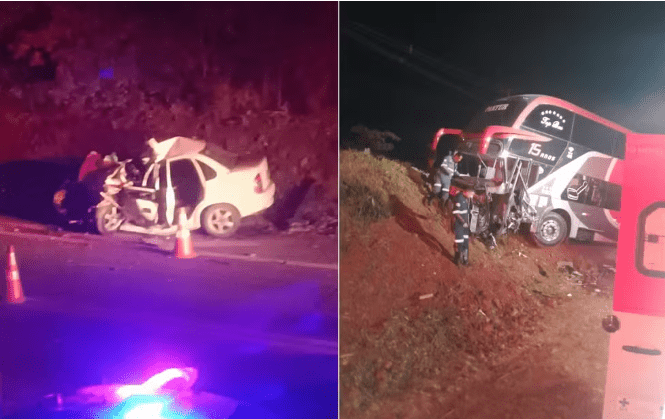 A colisão frontal entre os veículos aconteceu no km 181 da rodovia, segundo informações da Polícia Rodoviária, quando o motorista do carro perdeu o controle e invadiu a pista contrária.
