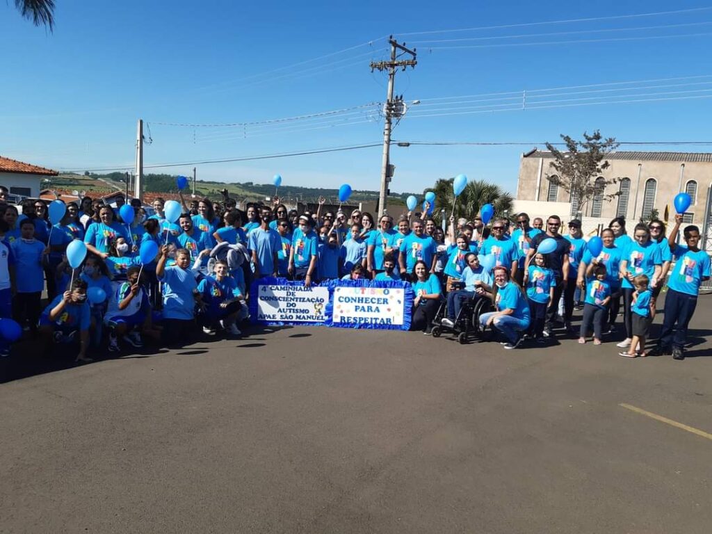 Realizada hoje dia 04 de abril de 2022 com saída as 8 horas da APAE a 4º Caminhada pela conscientização do Autismo, Presidente da APAE senhora Maria do Carmo Favorito Santarém não pode estar presente e foi representada pelo Vice Presidente Ciro Moss D’Avino, que agradeceu em nome de todos os Diretores, Funcionários e Usuários da APAE de São Manuel presentes na caminhada e, as parcerias com o Município de São Manuel em todas as áreas.