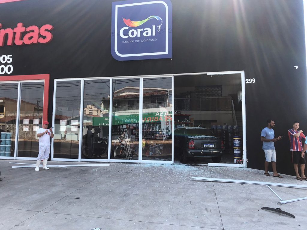 Segundo as informações, houve um choque entre os veículos e em seguida um deles foi parar dentro de uma loja de tintas.
