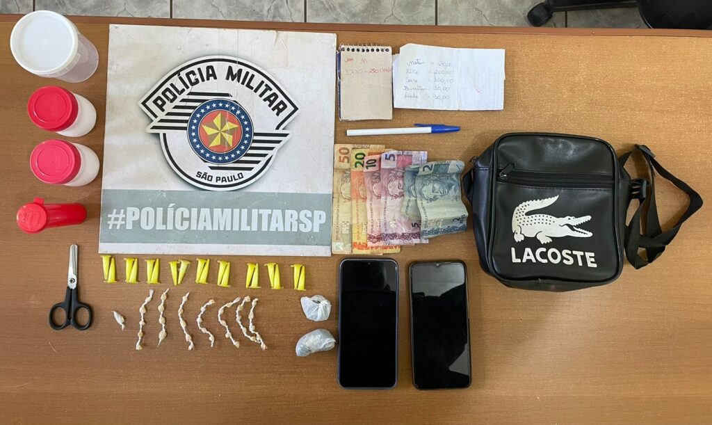 Na manhã de hoje (23), um casal foi preso em flagrante no Parque Residencial Lourenção, em Areiópolis, pela prática dos crimes de tráfico de drogas e associação para o tráfico.