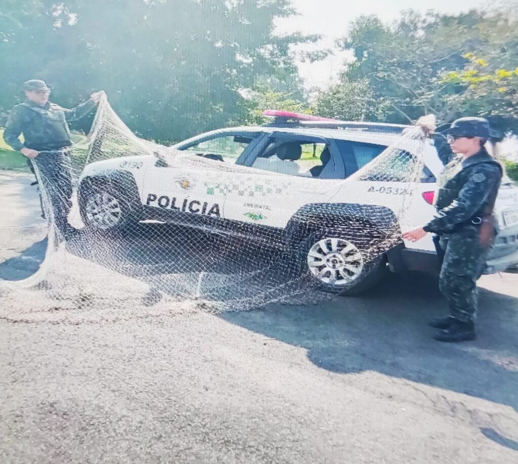 Durante patrulhamento preventivo, na terça-feira (29), no bairro Mina, em Botucatu, foi efetuada a abordagem em um barco as margens da represa do rio tiete onde foi logrado êxito em encontrar dentro do viveiro de peixes, um saco de ráfia contendo em seu interior uma tarrafa de naylon e corrente, com 4 metros de altura malhas 70mm.