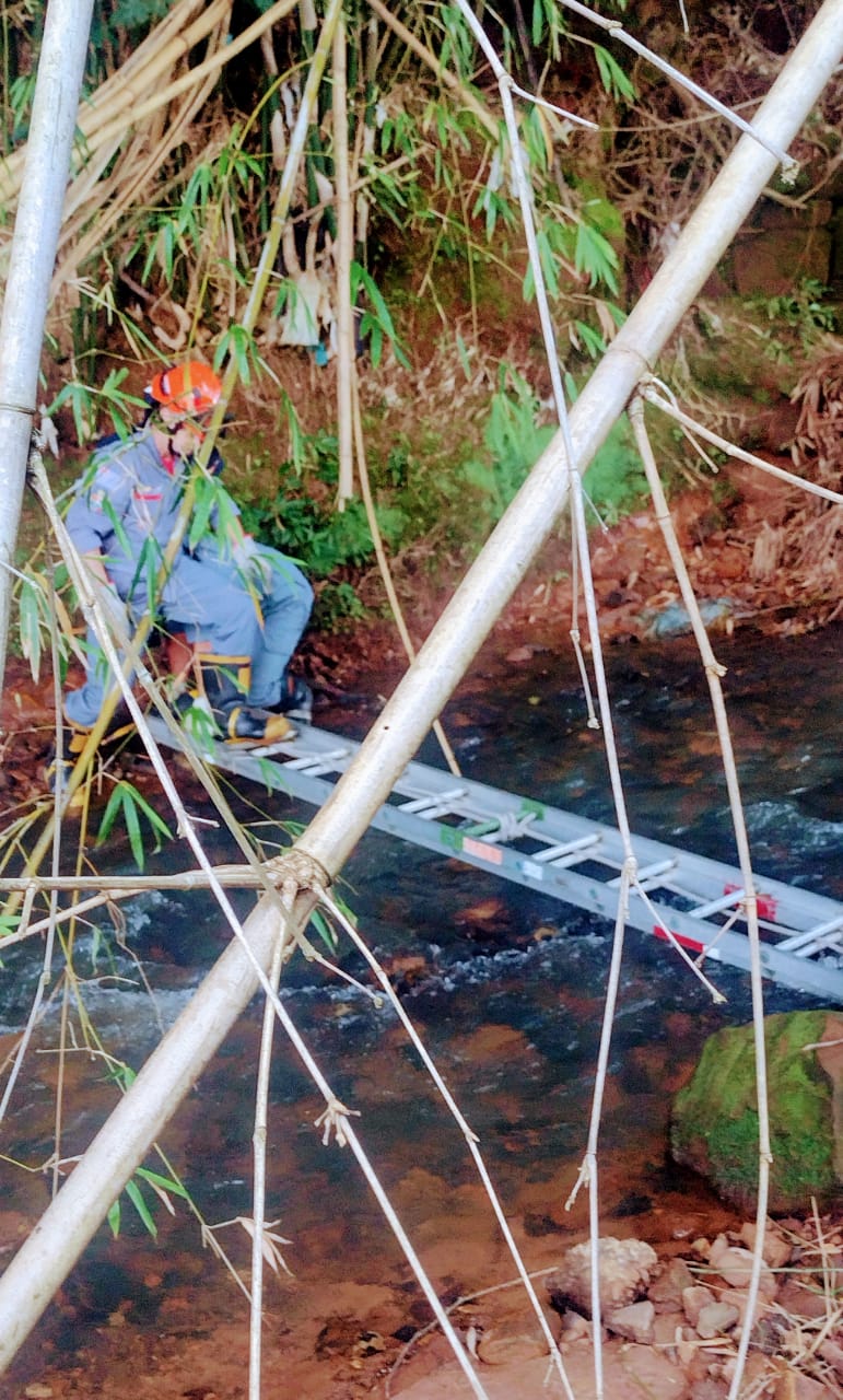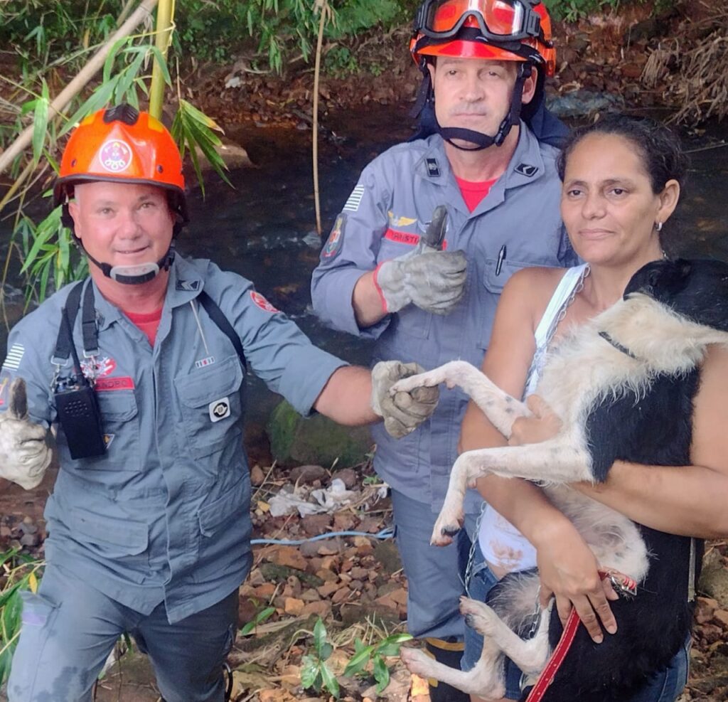 Foi necessária uma escada para transpor o rio para acessar o bambuzal e com o uso de serra sabre foi cortado alguns galhos para acessar e livrar a cachorra. O animal foi deixado aos cuidados da proprietária que estava no local acompanhado o salvamento.