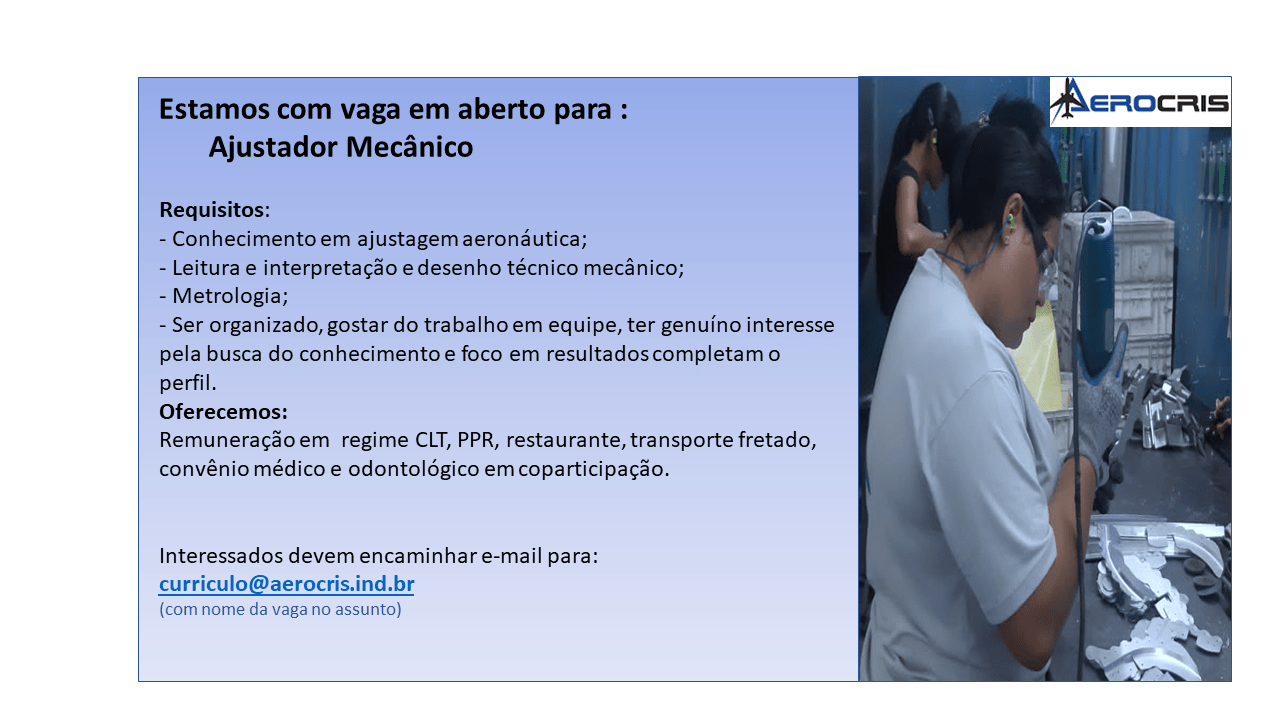 CARREIRA NA INDÚSTRIA AERONÁUTICA, Atenção de vaga de emprego.