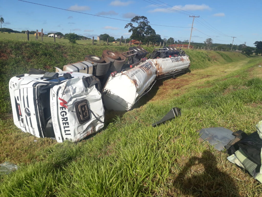 Uma equipe da Cetesb esteve no local, por se tratar de carga inflamável. O condutor da carreta não se feriu com gravidade. (Acontece Botucatu)