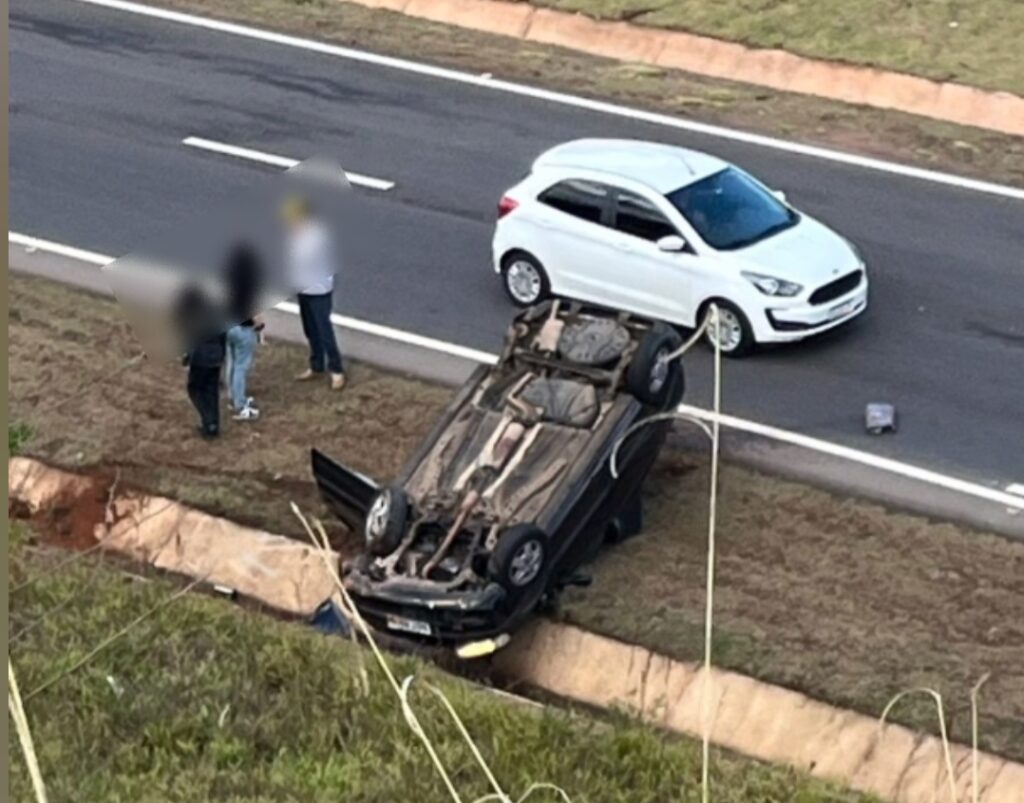 Um carro capotou na tarde desta segunda-feira (28) na Rodovia João Hypólito Martins (SP-209), conhecida como Castelinho, em Botucatu. O acidente ocorreu no trecho de acesso ao Shopping Botucatu.
