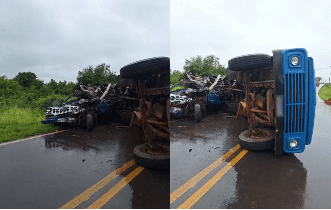 Dois caminhões colidiram, resultando na morte de um dos motoristas no local. O outro condutor foi socorrido em estado grave para um hospital da região, mas seu estado de saúde não foi informado.
