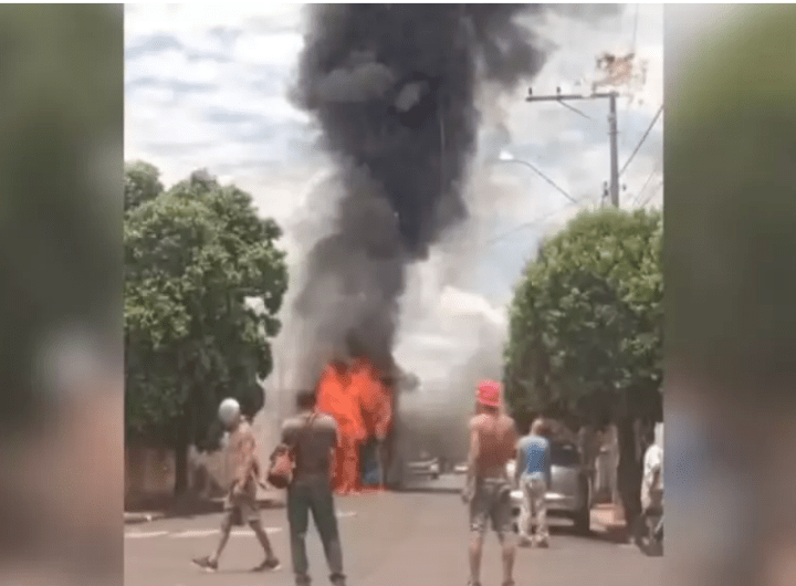 Um ônibus de transporte escolar pegou fogo na tarde desta sexta-feira (20), no bairro Ribeiro, em Lins (SP). O...