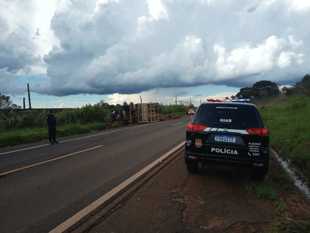 O condutor da carreta, que transportava madeira, não se feriu. O veículo chegou a capotar após a colisão, e a carga ficou espalhada pelo acostamento.
