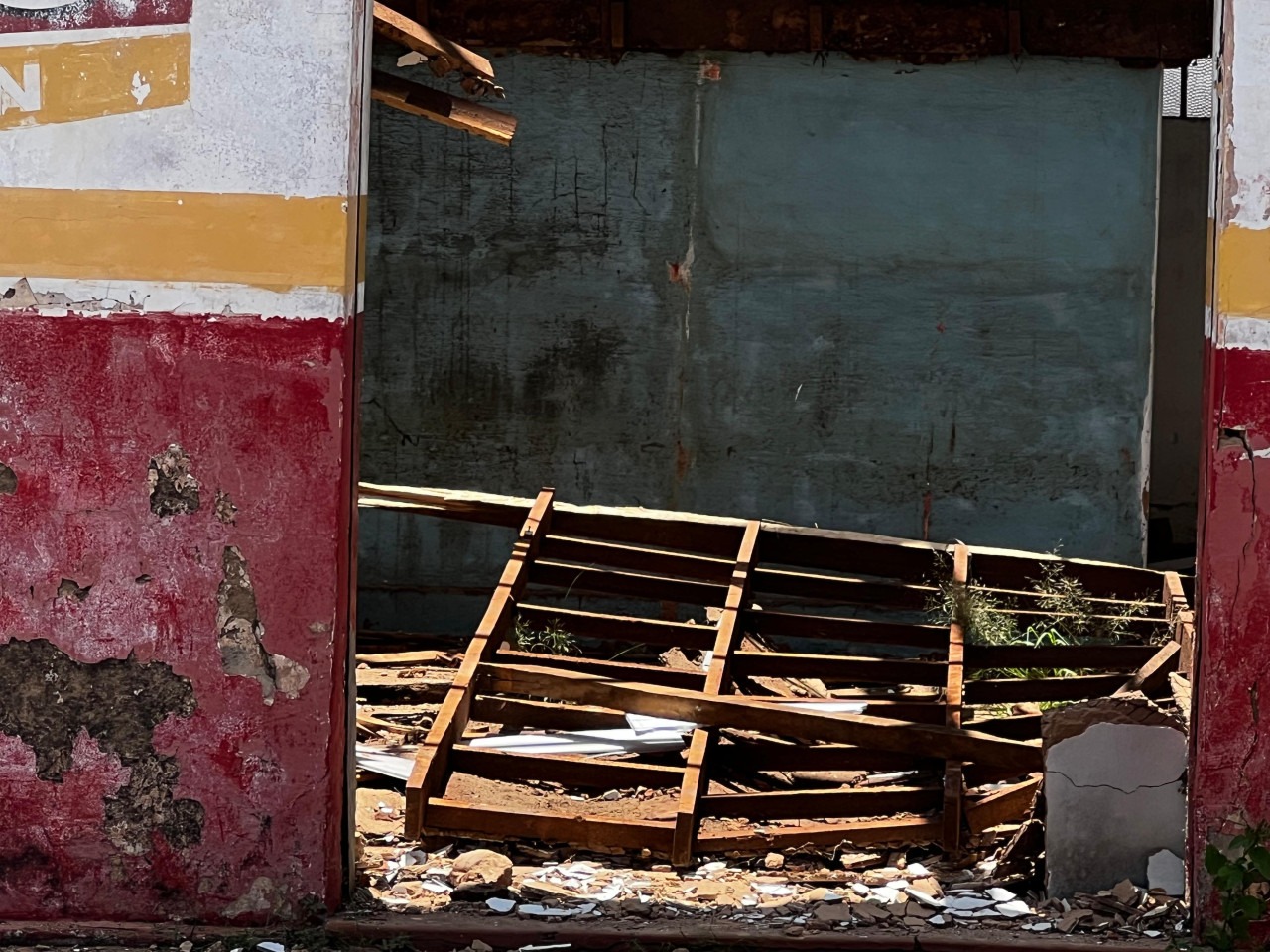 A estrutura do forro de um imóvel antigo desabou. Um homem que trabalhava no local foi atingido, segundo apurou a reportagem.