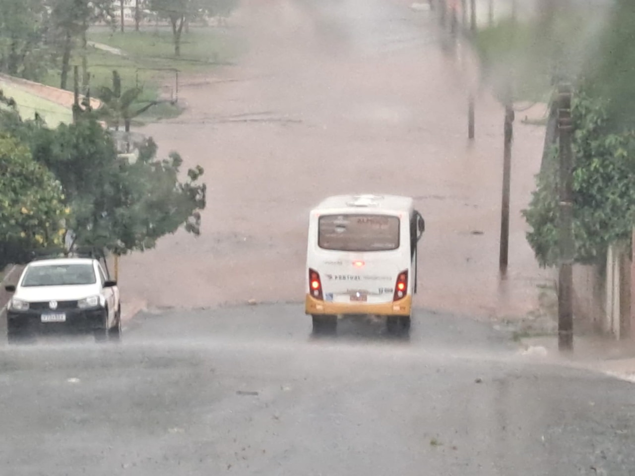 No Jardim Peabiru, região leste do município, a rua Rafael Lopes ficou totalmente submersa. Um veículo foi arrastado pela força água, segundo testemunhas.
