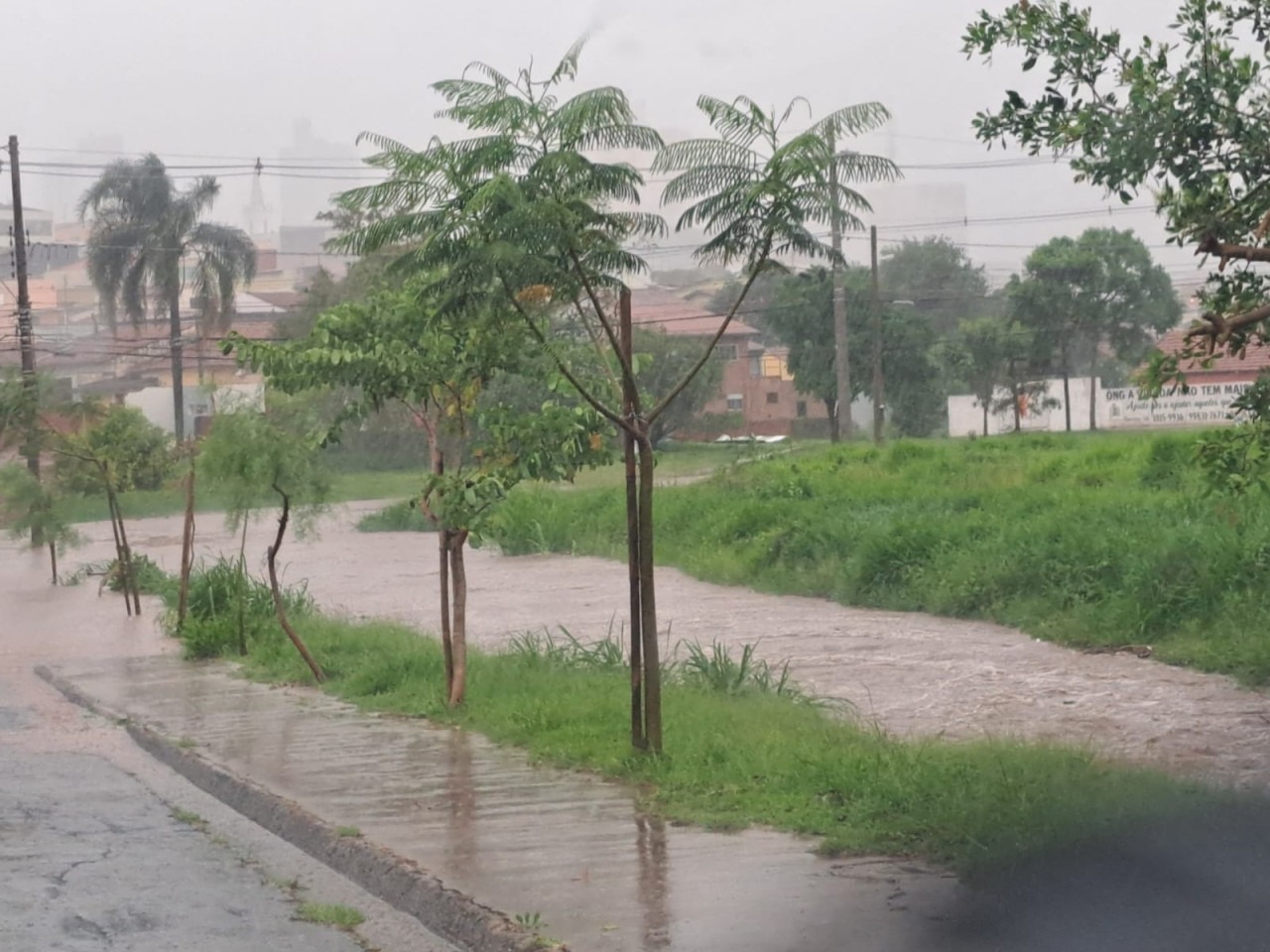 Na região da Vila Jardim o córrego do Tenente transbordou, impedindo que os veículos transitassem. Algumas imagens são impressionantes e mostram o volume de água.