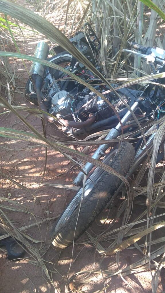 Após denúncia informando que uma motocicleta estaria escondida em área rural próximo ao Bairro da São Geraldo, a equipe composta pelos Gcms Paulino e Barbosa com apoio dos Gcms Simone e Luciano se deslocaram ao local.