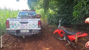 Com a chegada das viaturas e o sobrevôo da aeronave, os policiais iniciaram varredura em meio ao canavial às margens da estrada. Durante as diligências, foram localizadas quatro motocicletas espalhadas pela plantação, além de um veículo Ford Pampa que estaria sendo utilizado como apoio ao grupo. Em continuidade às buscas, os agentes encontraram uma espingarda calibre 12, supostamente empregada na atividade ilícita.