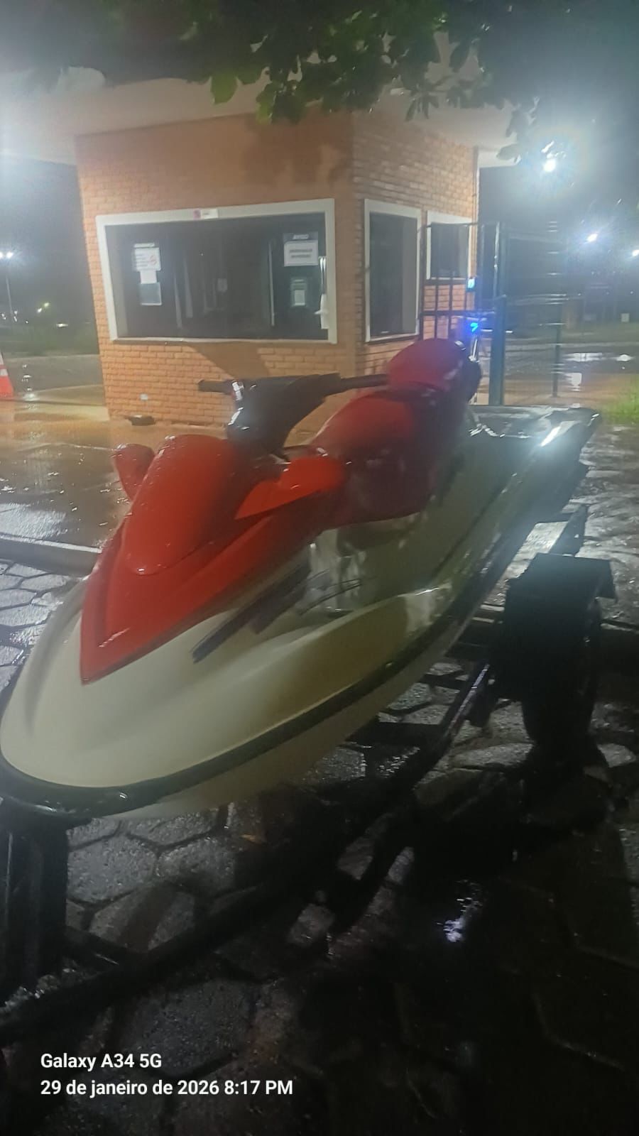 De acordo com a Polícia Civil, indivíduos ainda não identificados invadiram o imóvel, arrombaram os cadeados de segurança e utilizaram um veículo Fiat Uno, de cor cinza, para subtrair um jet ski da marca Sea-Doo, avaliado em aproximadamente R$ 35 mil.
