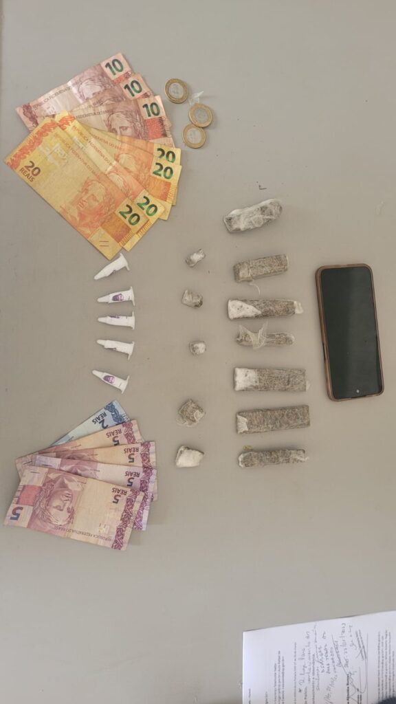 A ação aconteceu quando a equipe de policiais realizava o policiamento preventivo na região, e ao ser realizada a abordagem no infrator, foi localizada com ele 12 porções de maconha, 05 de cocaína e R$ 135,00 em espécie.