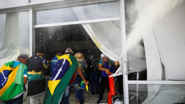 Apoiadores do ex-presidente Jair Bolsonaro furaram bloqueios e invadiram e depredaram prédios do governo contestando o resultado das eleições de outubro e pedindo a saída do presidente Luiz Inácio Lula da Silva.