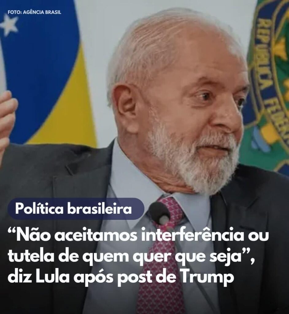 O presidente Lula publicou nas redes sociais uma resposta para as publicações de Donald Trump e Jair Bolsonaro nesta segunda-feira (07). O presidente dos Estados Unidos publicou uma defesa ao ex-presidente Bolsonaro, onde afirmou que o político está sofrendo uma perseguição e que ele não é “culpado de nada” do que é acusado.