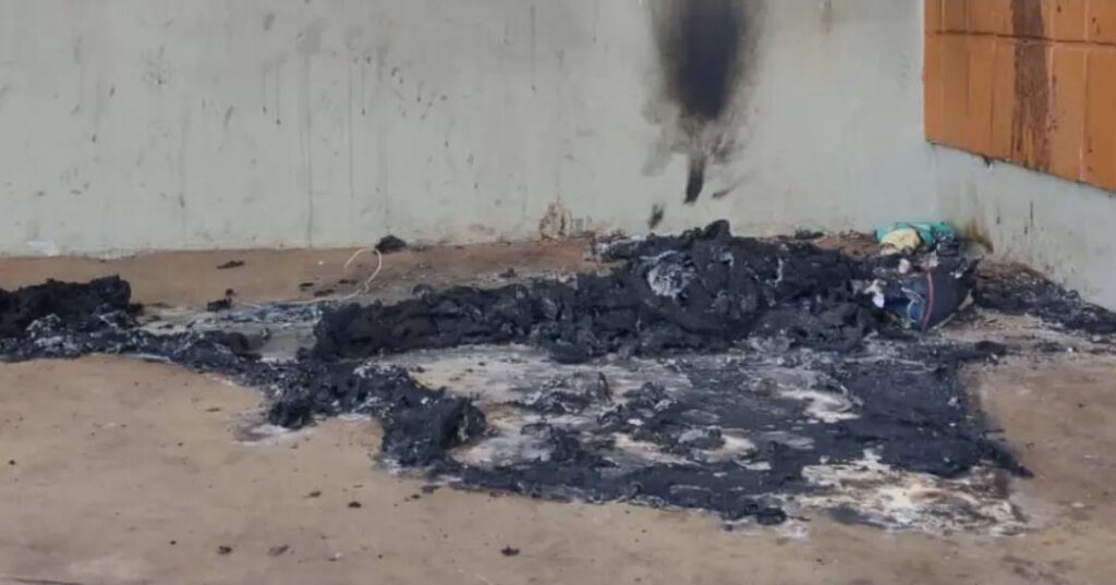 O jovem foi localizado nas proximidades. Antes mesmo de ser questionado, ele teria admitido ter cometido o crime e resistiu a prisão: “Fui eu mesmo que joguei fogo nos dois”.
