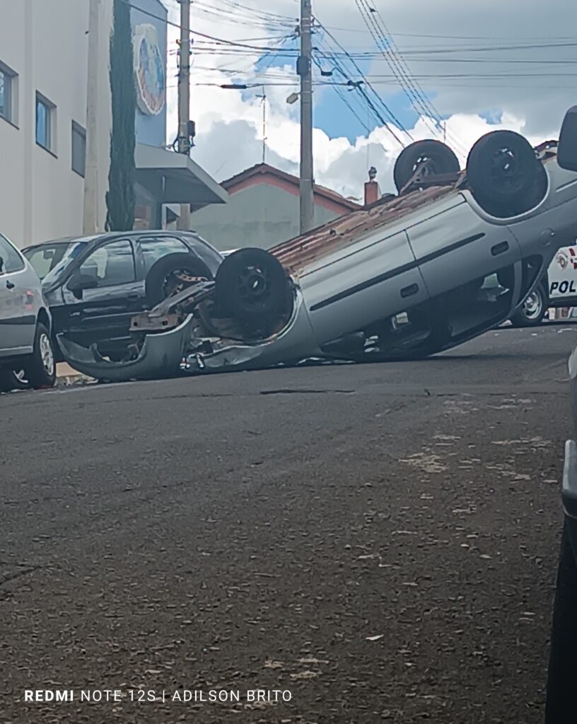 Na tarde desta sexta-feira (5), uma motorista perdeu o controle da direção do seu veículo e acabou capotando na rua 15 de novembro, no centro de São Manuel.