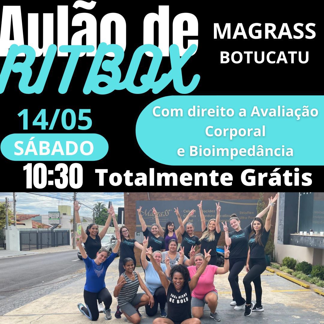 Neste sábado dia 14 de maio, as 10:30, totalmente gratuito, aulão de ritbox com a instrutora Fabi Castro na clínica Magrass Botucatu.