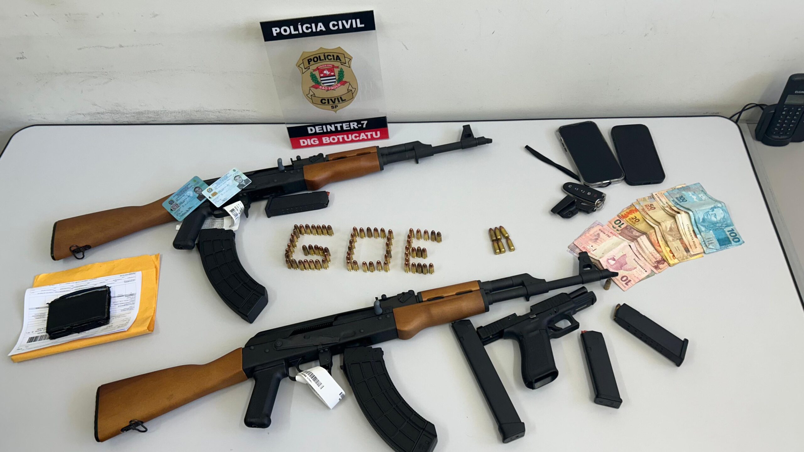 Segundo a Polícia Civil, os suspeitos utilizavam documentação falsificada, com diversas inconsistências, para comprar dois fuzis AK-47. Ambos se identificaram como policiais do Exército Brasileiro, apresentando documentos que aparentam ser falsos. O Comando do Exército em São Paulo já foi acionado e enviou uma equipe a Botucatu para auxiliar na apuração da identidade dos envolvidos.
