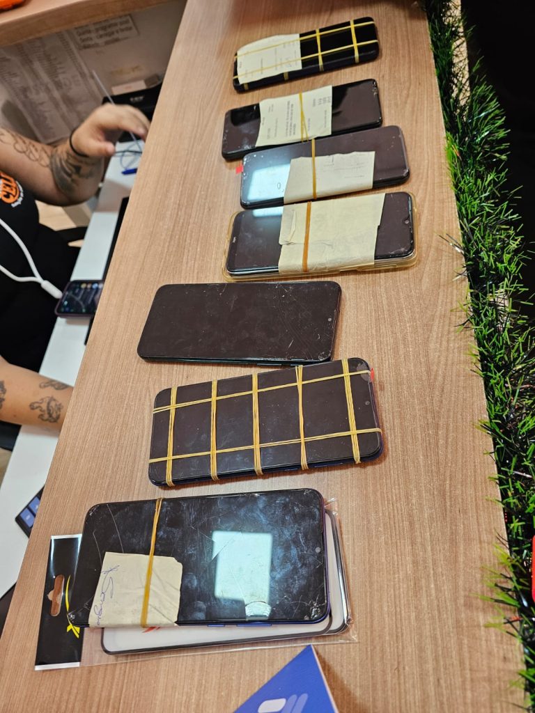 A ação teve como foco a fiscalização de estabelecimentos comerciais que trabalham com venda e manutenção de celulares e tablets. Durante as vistorias, os policiais conferiram aparelhos de diversas marcas, juntamente com seus respectivos números de IMEI, para identificar possíveis irregularidades.