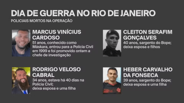 A esposa de um dos policiais mortos durante a megaoperação das polícias Civil e Militar nos complexos do Alemão e da Penha compartilhou nas redes sociais a última troca de mensagens que teve com o marido, o 3º sargento do Bope Heber Carvalho da Fonseca, de 39 anos.
