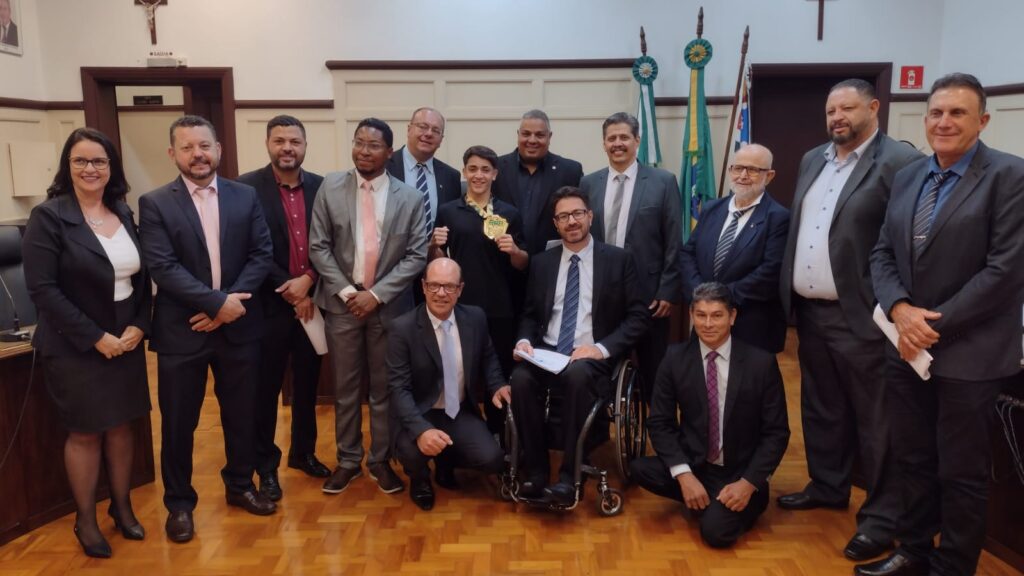 Por requerimento do vereador André Moscatelli, a Câmara Municipal de São Manuel homenageou na noite de ontem (04), o jovem atleta sãomanuelense, Rickson Vidal.