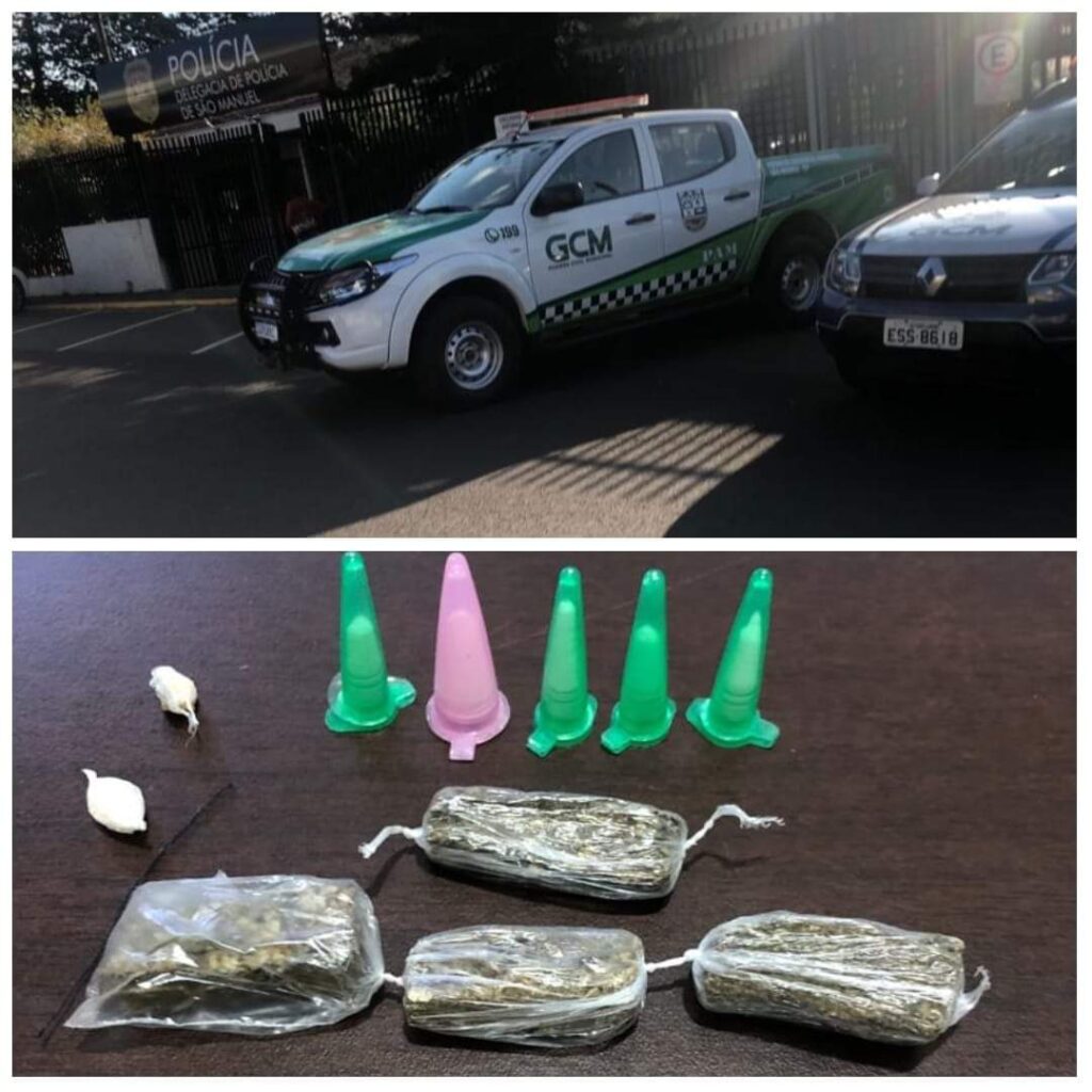 Sendo assim, foi dada voz de prisão ao mesmo sendo encaminhado até a Delegacia de Polícia do Município, onde a Autoridade Policial, Dr. José Eduardo, tomou ciência dos fatos e ratificou a voz de prisão de Tráfico de Entorpecentes, permanecendo o detido a disposição da justiça. (Diretoria Municipal de Segurança e Trânsito de São Manuel)