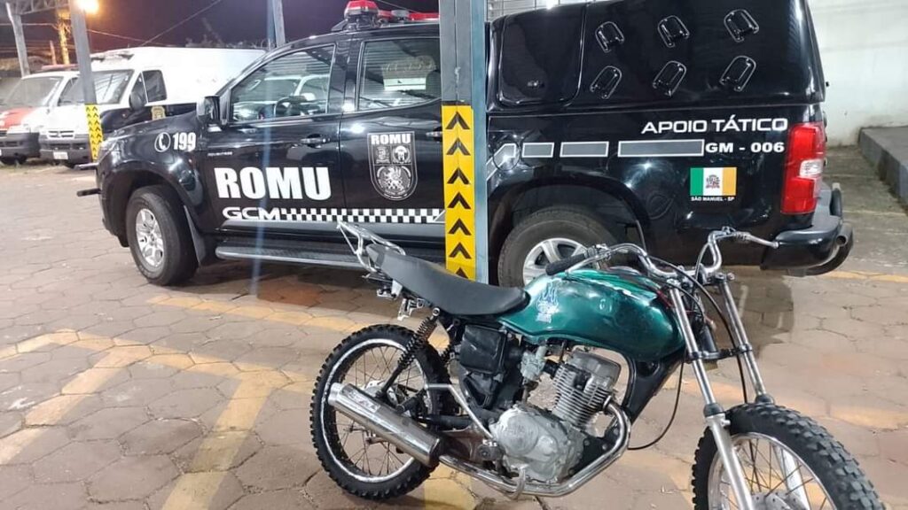 Os agentes da Guarda Civil Municipal, Sub Cmt. Naiara e os GCMs Andrigo Mattos, na noite de ontem (05), durante patrulhamento pela praça Tonico e Tinoco, na avenida José Horácio Mellão, avistaram uma motocicleta sem emplacamento no interior de um posto de combustível, ao apurar os fatos com o proprietário fora informado que estava transportando em um reboque e fazia uso em área rural, sem apresentação de nota feita averiguação da mesma e constado produto de furto.