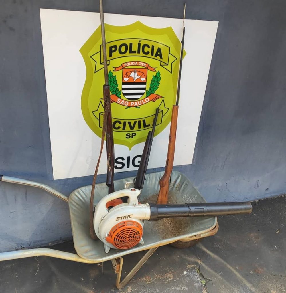 Durante a oitiva, surgiu a informação de que o segundo indivíduo possuía várias armas de fogo em sua residência. O Delegado indagou se ele permitiria uma vistoria, e o suspeito concordou, fornecendo autorização por escrito. Na vistoria, foram encontradas quatro armas longas, incluindo três armas artesanais e uma espingarda de pressão que parecia ter sido modificada para disparar calibre .22.