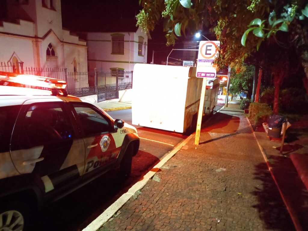 As equipes de policiais militares em patrulhamento pelo centro da cidade, na rua Gomes de Faria, avistaram um individuo de blusa fluorescente agachado próximo ao trailler churros do Titus Churros e Creps.