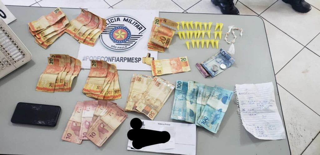 Com eles foram localizadas 27 porções de cocaína, 11 de crack e 01 de maconha, além de R$1.270, 50 em espécie.