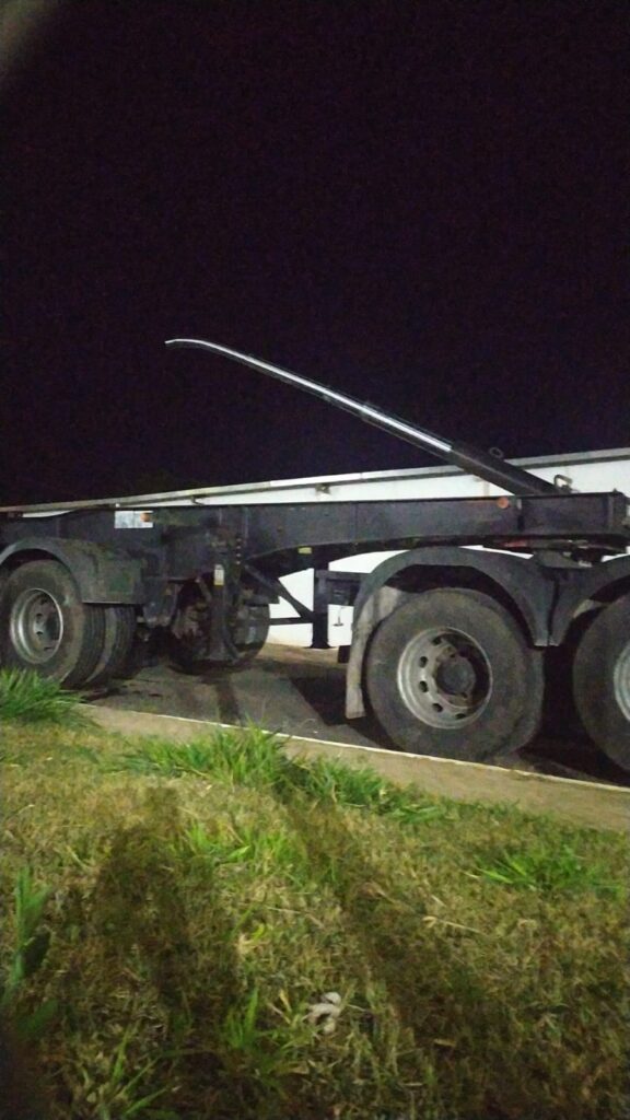 Um caminhão tipo caçamba trafegava pela rodovia e o motorista não percebeu que a caçamba do caminhão havia levantado, ao passar pela passarela que liga Aparecida de São Manuel ao Distrito Industrial I, acabou atingindo a passarela.