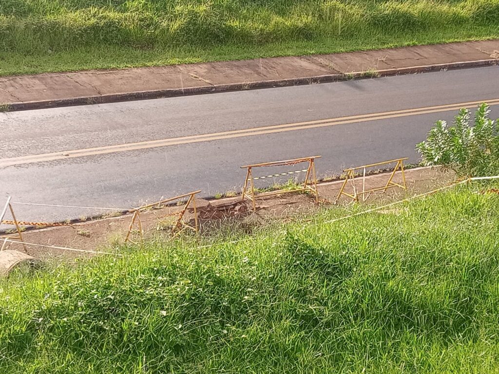 Desde o início do mês de fevereiro, a prefeitura sinalizou uma cratera que abriu na calçada da via no final do ano passado e se agravou ainda mais com a chuva do dia 30 de janeiro.